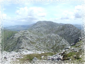 Eine fantastische Rundumsicht belohnt für die Mühen des Aufstiegs. Im Westen ragen die kahlen Felskuppen der 12 Bens hinter dem Lough Inagh auf, an deren nördliches Ende sich der Kylemore Lake anschließt. Die Kylemore Abbey duckt sich vor dem Hang des Doughruagh. Im Norden thront mächtig der Mweelrea über den Killary Harbour über dessen östliches Ende die Devilsmother wacht. Und südöstlich schweift der Blick über die Maamturk Mountains bis hin zum Lough Corrib.