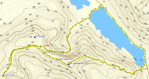 Vom Parkplatz aus gehen wir am Ufer des Doo Lough entlang bis zu der Stelle, an der der Owengass River aus dem See austritt. Hier können wir den Fluss einfach über zwei kleine Wehrmauern überqueren. Wir folgen dem Weidezaun der sich von hier aus parallel zum Owengass River am Hang entlang zieht auf der hangzugewandten Seite. Hier sind deutliche Steigspuren zu erkennen. Nach ca. 300m wenden wir uns nach rechts in den Hang hinein und beginnen zu klettern. Nicht zu früh in den Hang steigen da dieser nach oben hin zunehmend steiler wird und kaum noch ohne Kletterausrüstung zu bewältigen ist. Lieber ein paar Meter weiter dem Zaun folgen und dann in nordwestliche Richtung den Hang angehen.